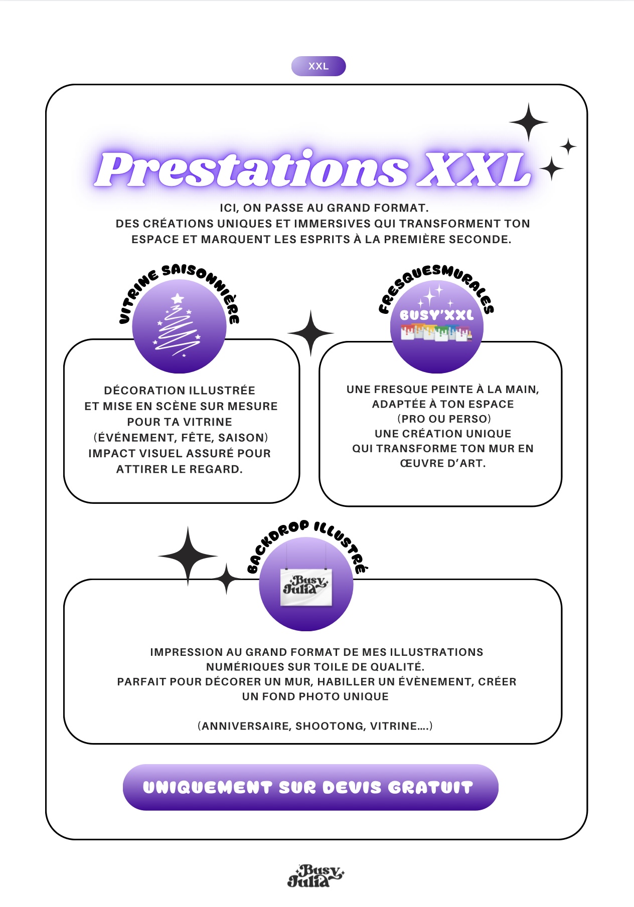 portraits, illustrations, projets pros, toiles ou encore projets XXL… tout y est !